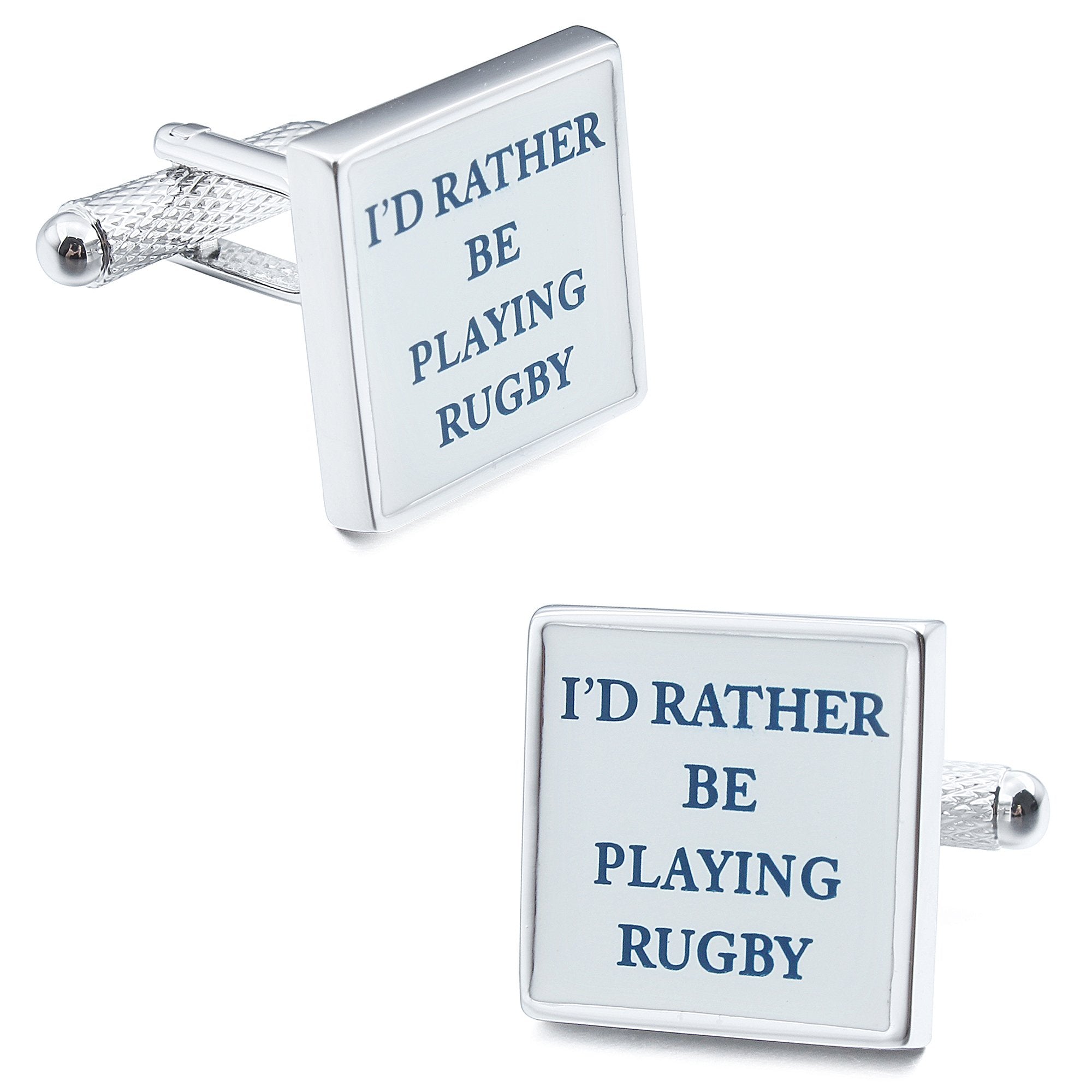 Get into the scrum! These wonderful tile cufflinks are rhodium plated and feature an "I'D RATHER BE PLAYING RUGBY" text on each cuff.
